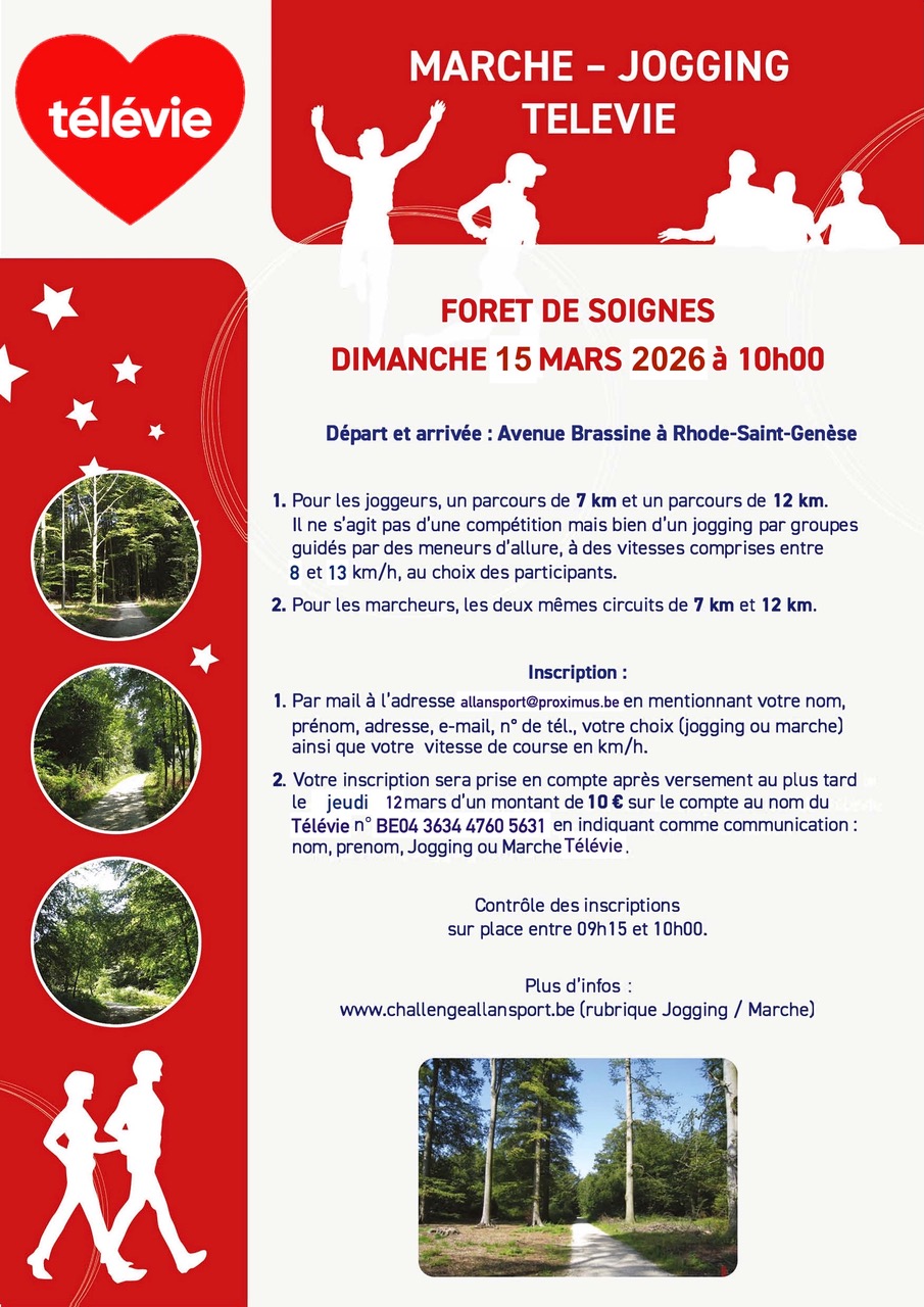 Votre inscription sera prise en compte après le versement de 10 € sur le compte Télévie BE04 3634 4760 5631 en indiquant comme communication nom, prénom, jogging ou marche Télévie.