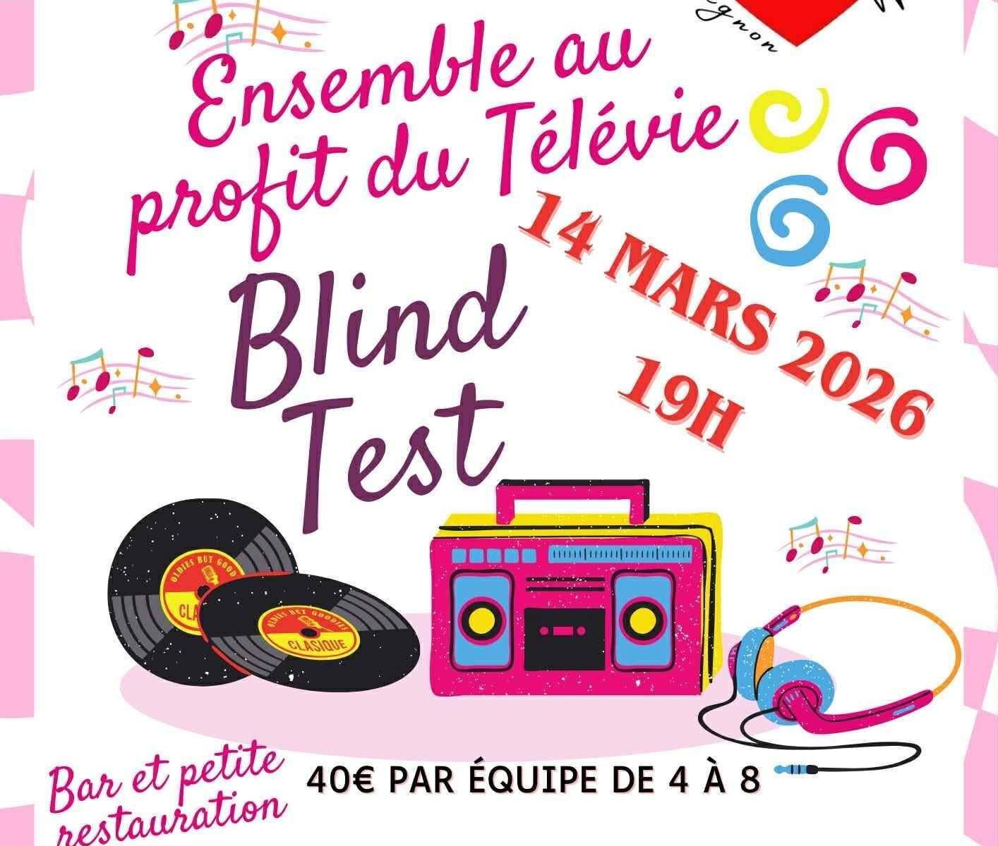 L’ASBL Tonton Dingo et le Comité Télévie Quaregnon Wasmuël s’associent pour organiser un blind test au profit du Télévie. Venez danser, chanter et jouer en équipe sur des rythmes endiablés.