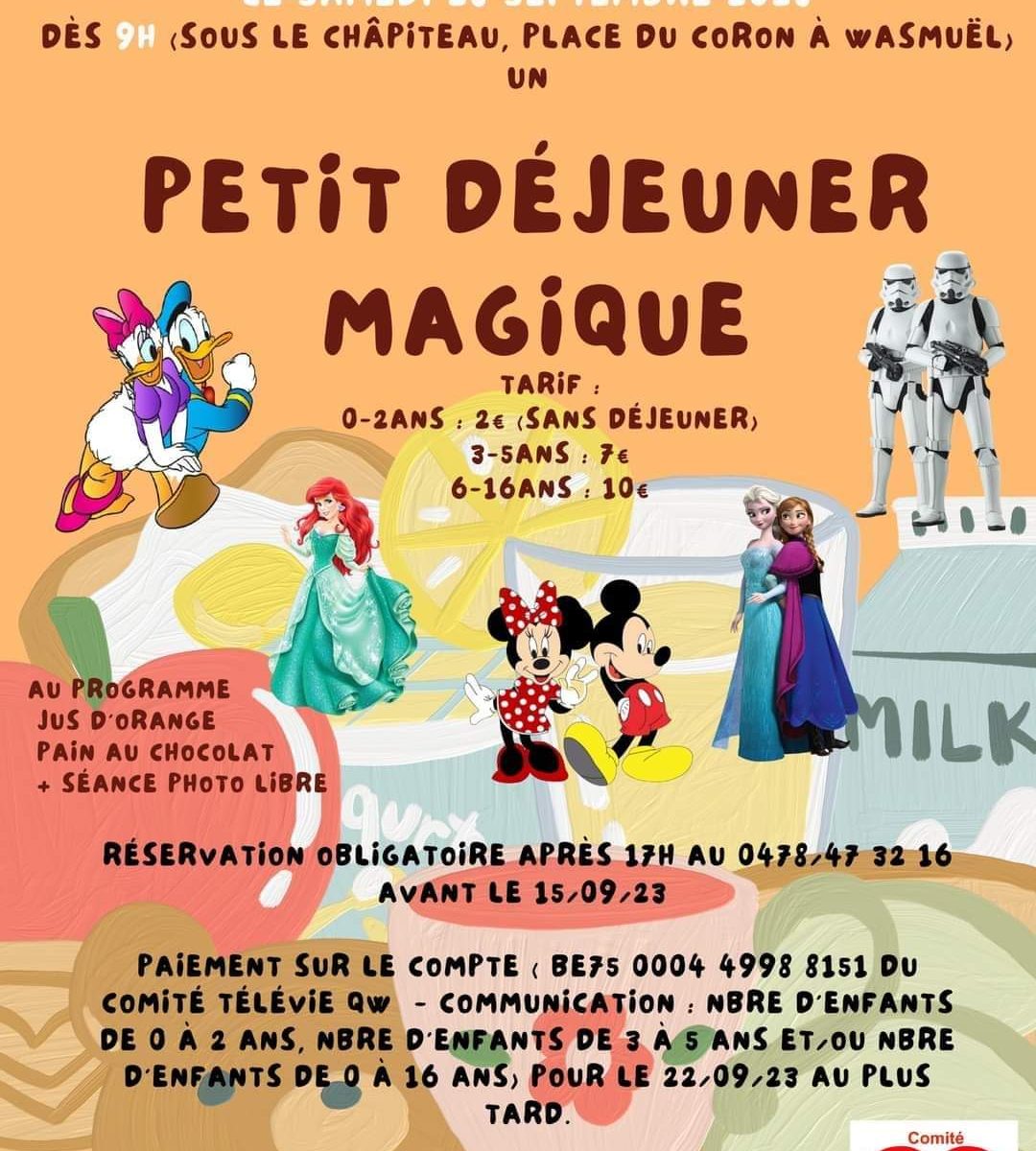 Le comité Télévie de Quaregnon-Wasmuël organise dans le cadre de la ducasse, un petit-déjeuner magique pour les enfants avec les personnages Disney et Star Wars.