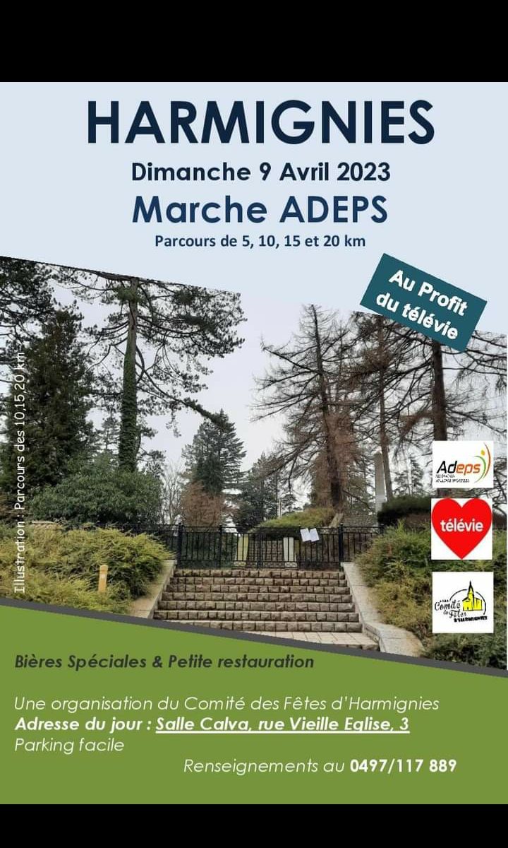 Marche télévie à fontaine l’eveque le 8/04/23 , trois parcours vous sont proposés 3, 5 et 11Km, inscriptions sur place à partirde 8 h 00 jusque 14h00