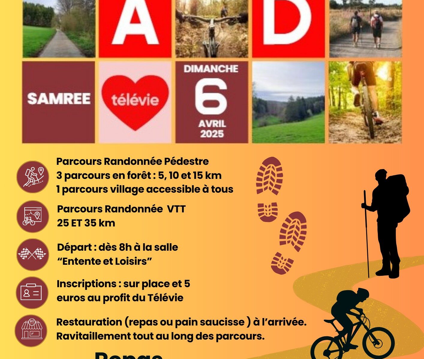 – De 8h à 11h : marche de 6 ou 10 km (participation de 3 € par participant).