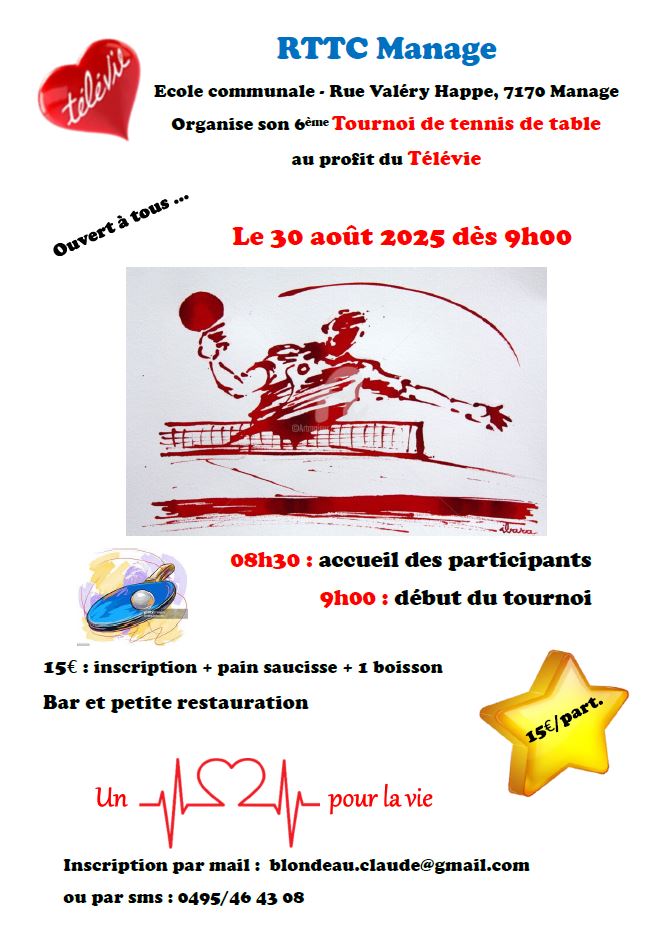 6ème tournoi de tennis de table organisé par le comité « Un cœur pour la vie » en collaboration avec le RTTC Manage.