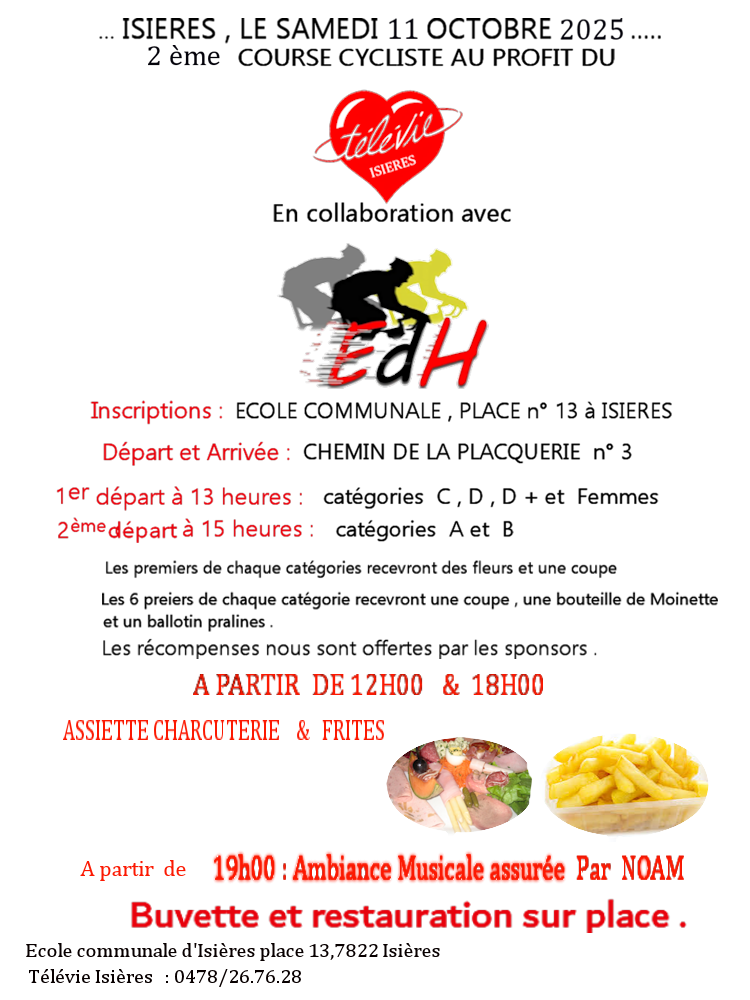 Inscription obligatoire par mail : blondeau.claude@gmail.com ou par sms au 0495/46.43.08.
