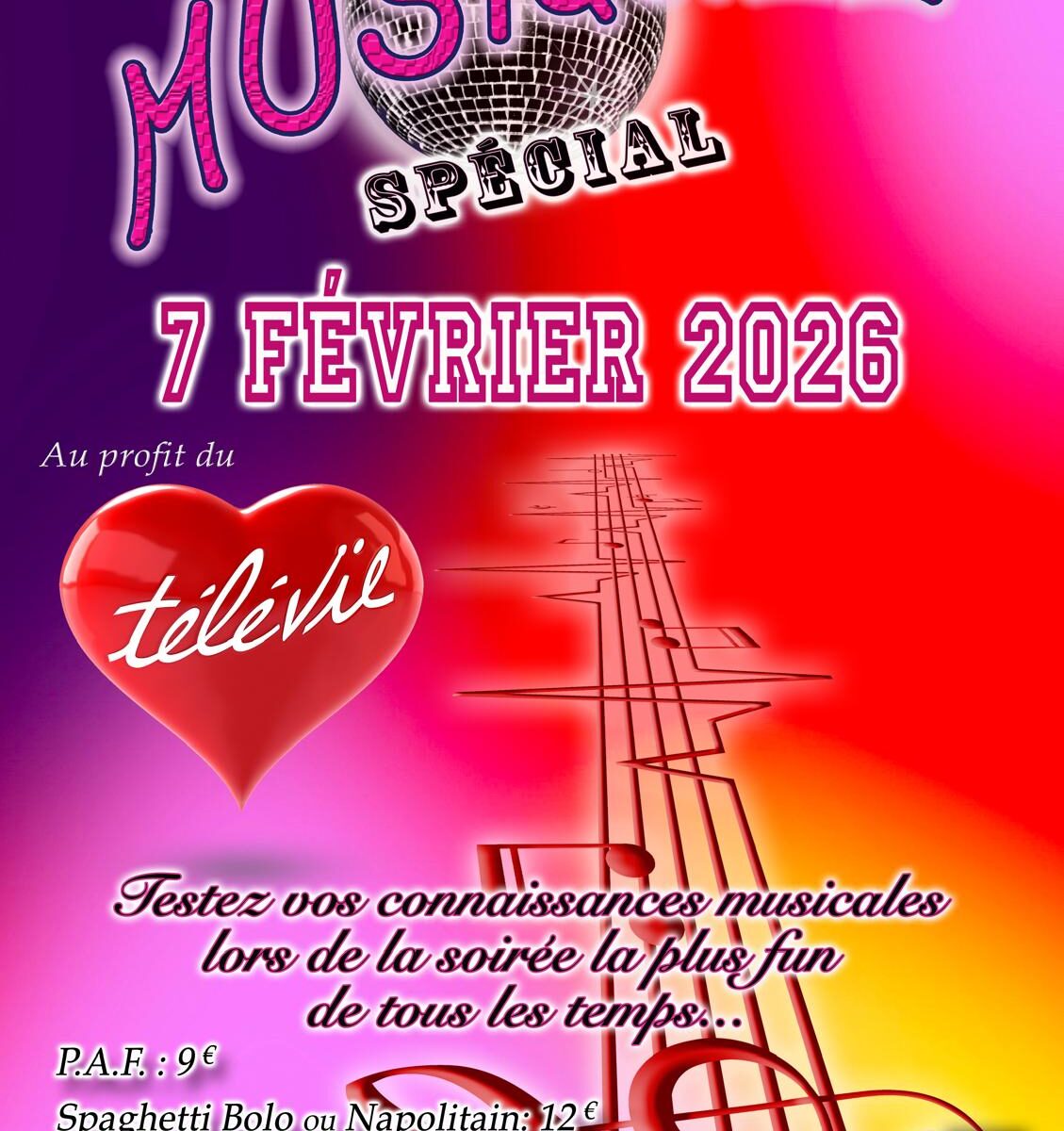 Souper convivial suivi d’une soirée ambiancée.
