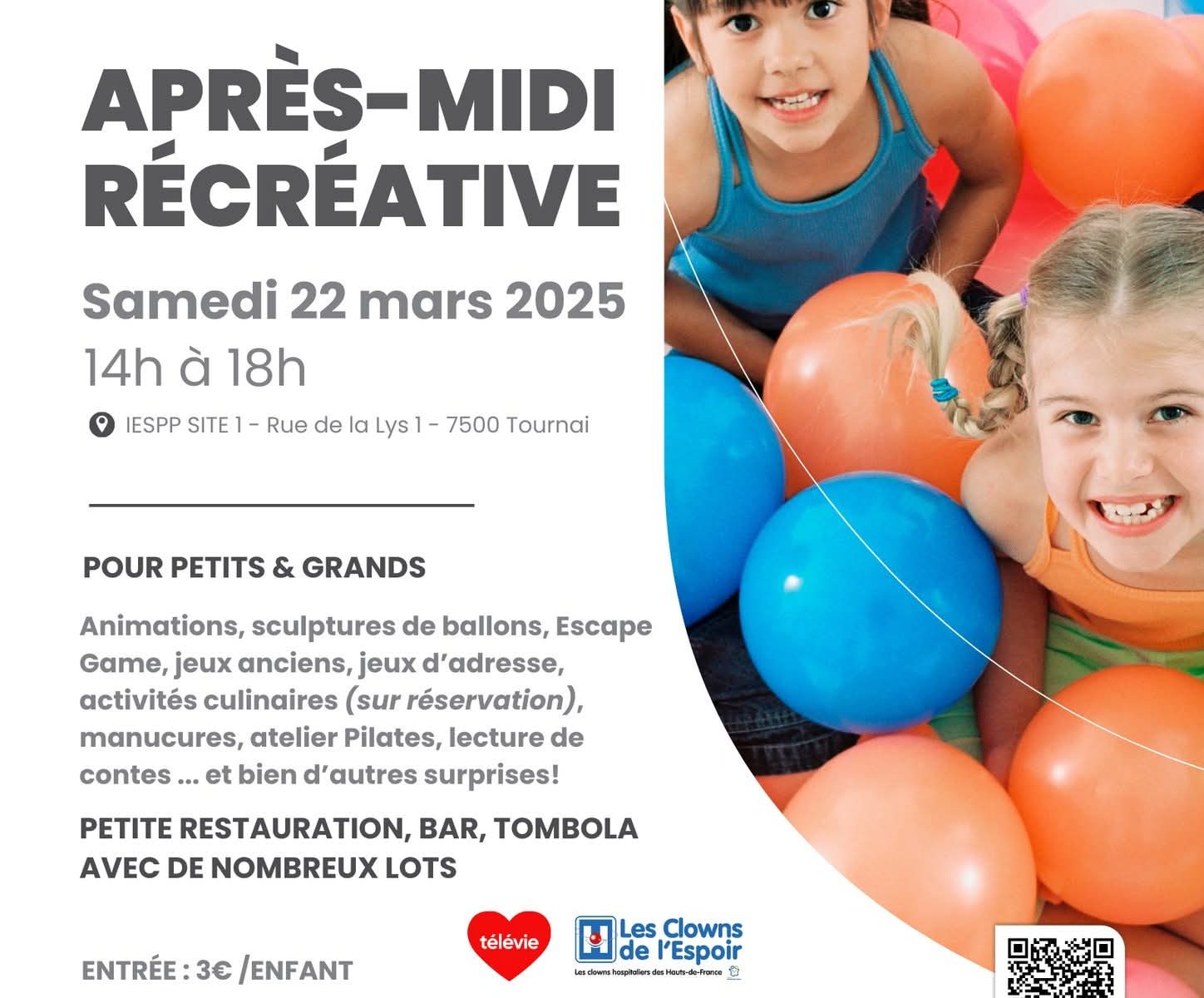 Plusieurs ateliers seront organisés (escape game maternelle/primaire, contes, jeux d’adresse, anciens jeux, animation pilate, grimage, manucure, activités musicales).
