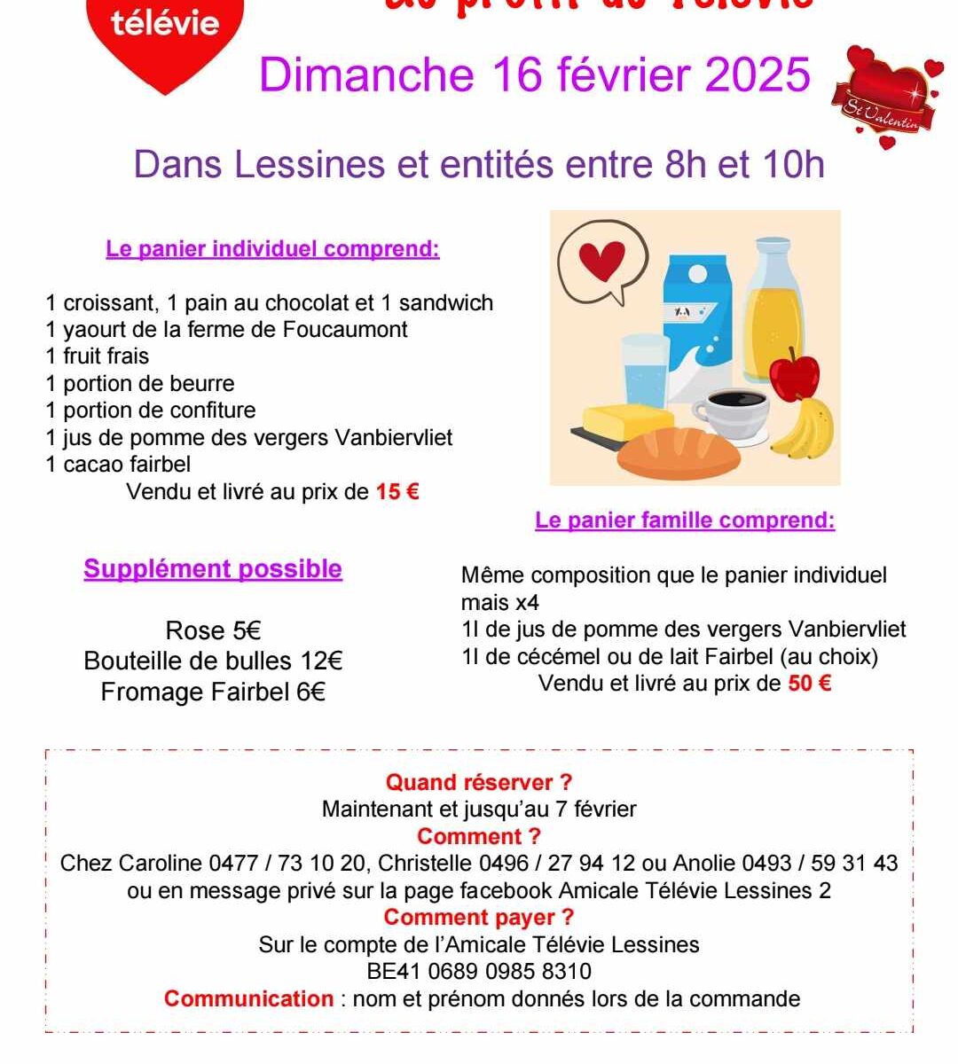 0496/27.94.12 ou par message privé sur la page Facebook « Amicale Télévie Lessines 2 ».