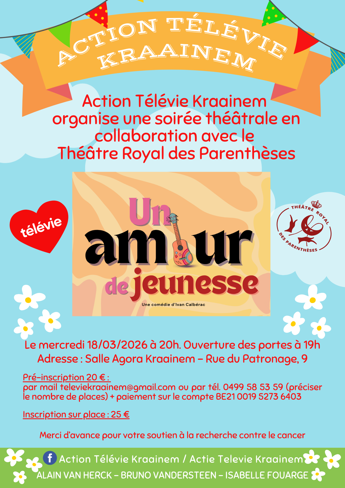 Action Télévie pour la deuxième année consécutive une soirée théâtre en collaboration avec le Théâtre Royal des Parenthèses. « Un Amour de Jeunesse », une comédie d’Yvan Calbérac.